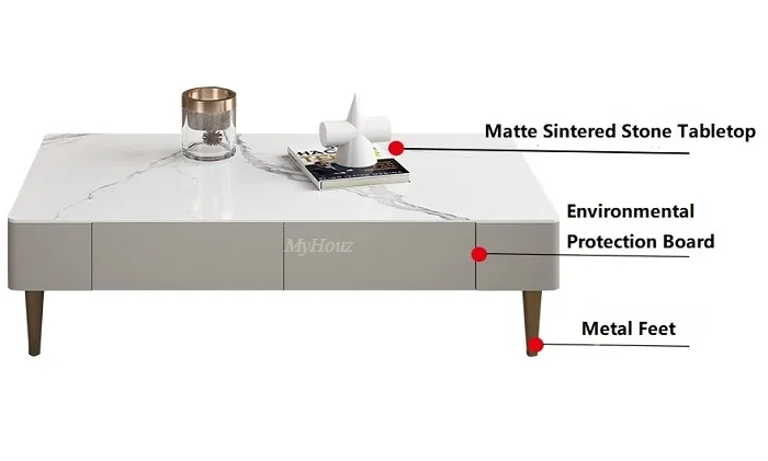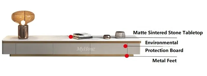 Materials: Matte sintered stone tabletop + environmental protection board + metal feet
