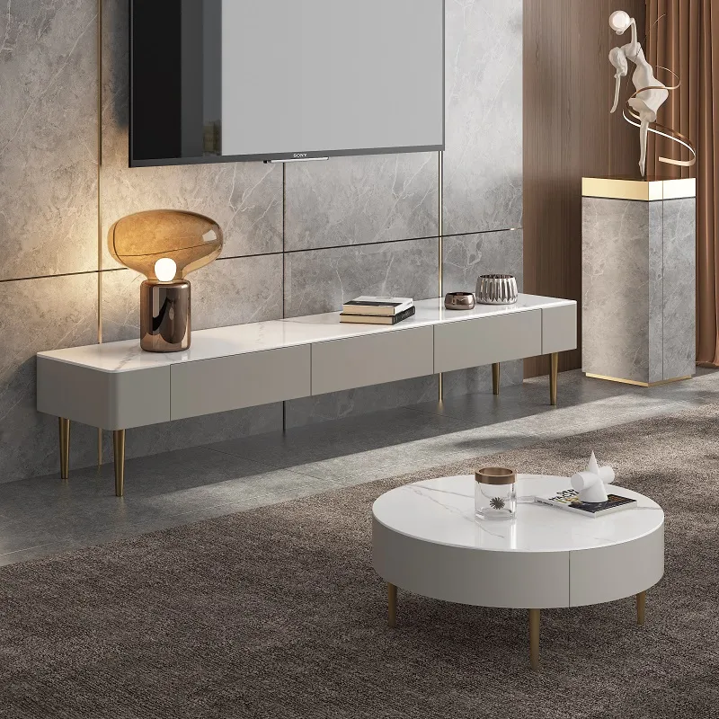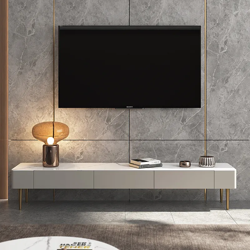 Light Luxury Snow White Sintered Stone TV Cabinet ITVC-020