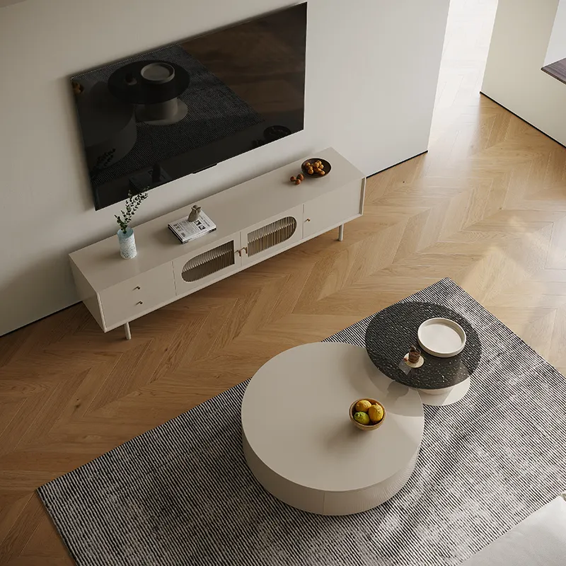 Materials: Matte Cream Lacquered + Environmental Protection Board + Solid Wood Feet