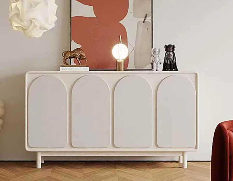 Materials: Matte Cream Colour Lacquered + Environmental Protection Board + Solid Wood Feet